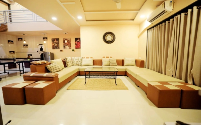 Mayank Farm Villa 4 BHK, Lonavala offers a relaxing countryside escape surrounded by green hills and open valley views. The villa includes four well-appointed bedrooms, spacious indoor living areas, a private swimming pool, and outdoor space ideal for unwinding with family or friends. Adding to the experience, guests can enjoy nearby adventure activities such as go-karting, making it a perfect stay for both leisure seekers and thrill lovers looking for a refreshing and fun-filled getaway in Lonavala.